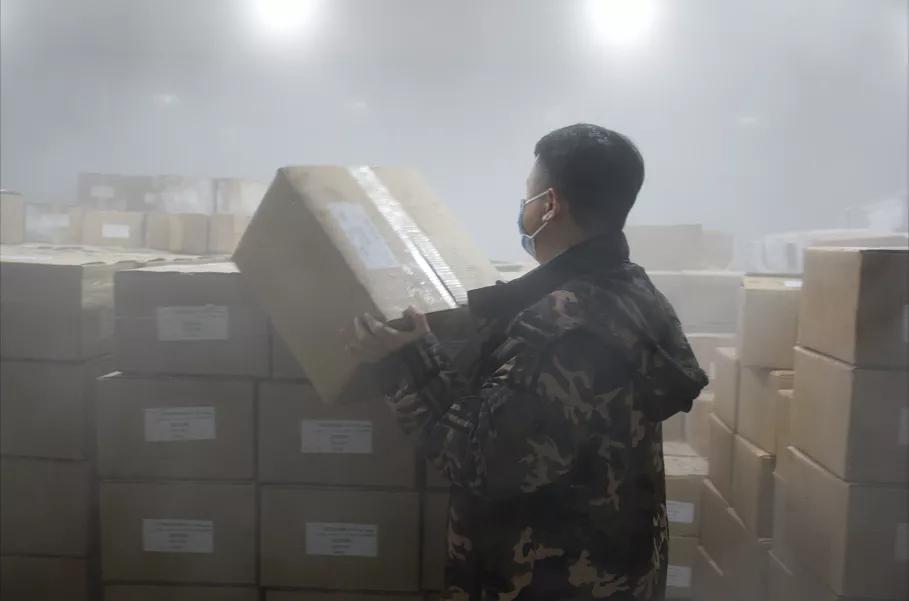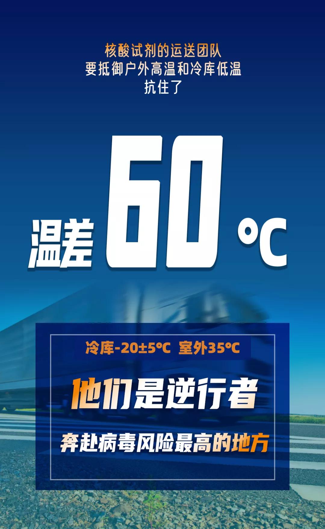 出来后,,,,,,,,从-25℃,,,,,,,,又回到30℃的高温中,,,,,,,,争分夺秒,,,,,,,,通过保温箱和冷藏车,,,,,,,,将试剂配送到检测点。。 。。。。每一天,,,,,,,,在近60℃的温差之间,,,,,,,,云云重复。。 。。。。